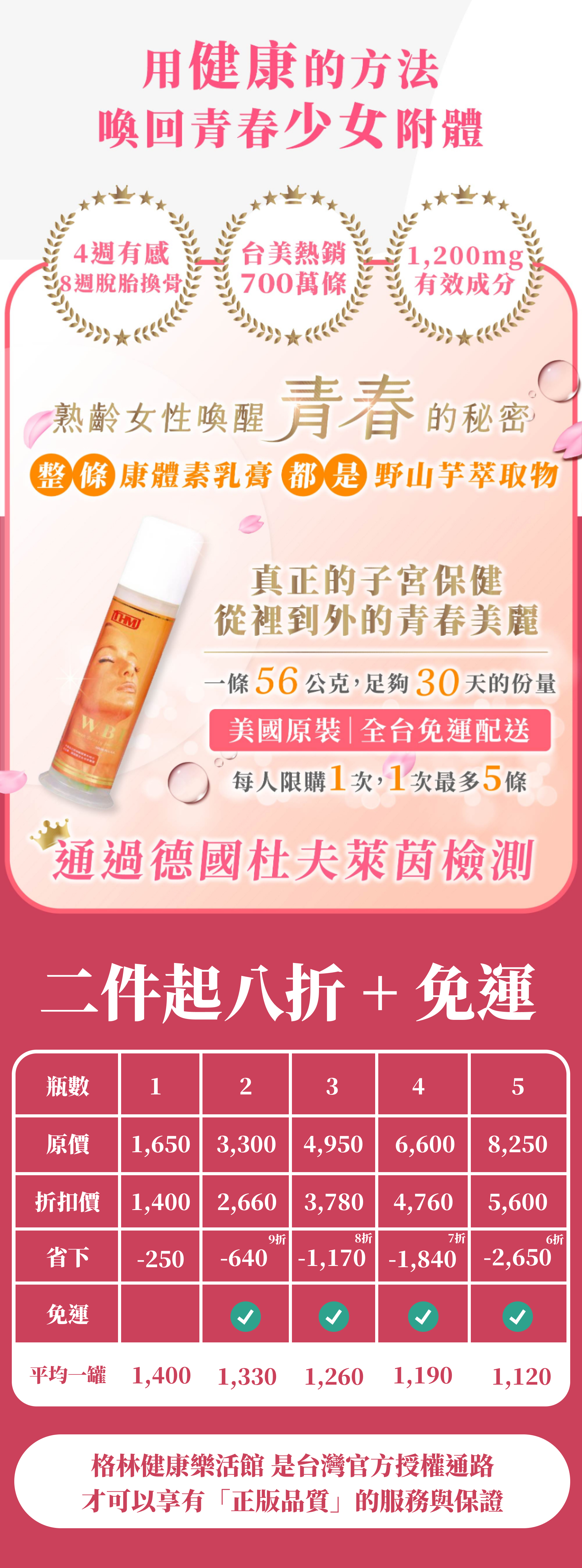 🔥 [限時] 第二件八折|台灣康醫天然康體素乳膏|女性專用|整條康體素乳膏,都是天然野山芋萃取物